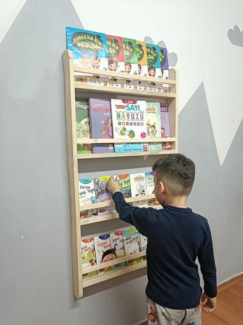 Ahşap Montessori Eğitici Çocuk Odası Kitaplık Rafı