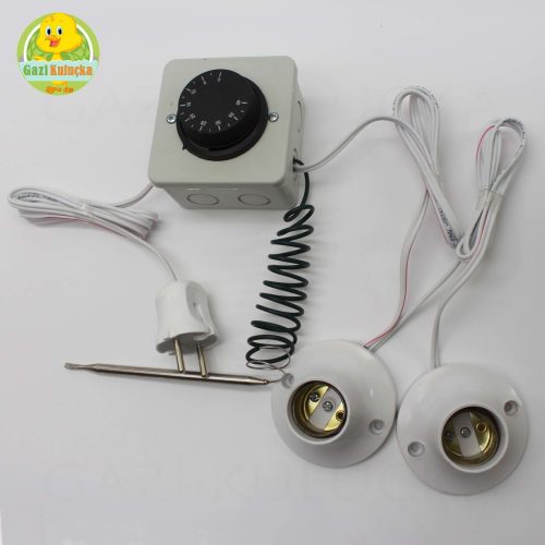 Termostat Kontrollü Sabit 2 Duyu Seti Civciv Kafes Kümes Kulübe Isıtma Sistemi